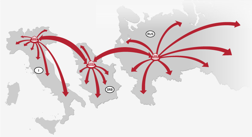 Vozimo na svim relacijama širom Evrope, na sve destinacije na koje naši klijenti isporučuju robu, ali smo najzastupljeniji na relaciji Srbija – Italija i Srbija – Rusija. To je razumljivo, jer su najveći broj naših klijenata upravo italijanske fabrike za koje dovozimo sirovine, iz Italije za Srbiju dakle, a zatim gotove proizvode vozimo nazad u Evropu ili Rusiju.